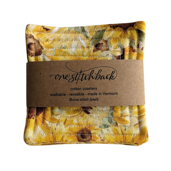 Our quilted coasters are tough enough for everyday use and easy to clean—just toss them in the washing machine and dryer on low! They come out fresh and ready to protect your surfaces again.